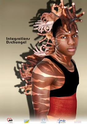 Unterrichtet habe ich die Jugentlichen 8 mal jeweils 3 Stunden. Es war nicht einfach dieses komplizierte Thema korrekt auszuarbeiten. Wir wollte keine gewohnten Bilder zu diesem Thema. Wir wollte ehrlich, provokant und absurd. Da dieser Auftrag für die AWO, Migrationsdienst, Jugendhilfe u.s.w war, haben wir es durchaus geschafft einige Leute in Shock zu versetzen. Die meisten Menschen sind gewöhnt zum Thema "Integration" lachende Menschen zu sehen die Händchen halten. Menschen die tatsächlich ein Integrationshintergrund haben wissen, dass "lachende Menschen die Händchen halten´" nichts damit zutun haben. Integration ist vielmehr mit Angst, Überwindung, Kraft und einem ständigem Kampf verwunden...